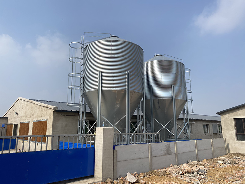 40°料塔倉頂為料塔提供了更大的強度和容量,還可防雨水進入料倉。料塔底部漏斗形狀設(shè)計,為飼料輸送提供條件。